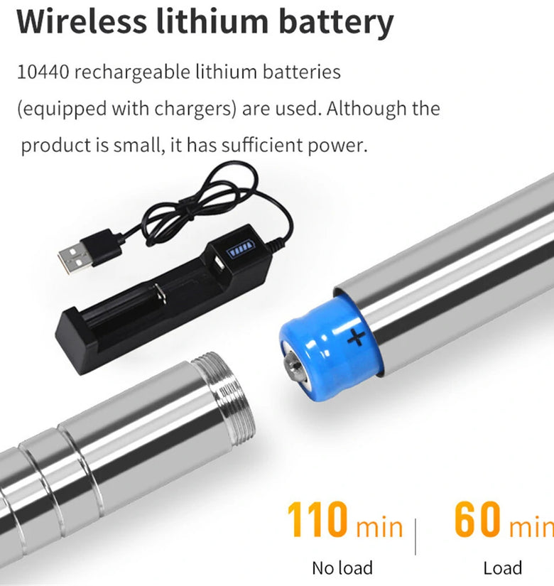 Long-lasting Battery Life: Features a rechargeable 10400 lithium battery that offers 110 minutes of no-load operation and 60 minutes of loaded operation.