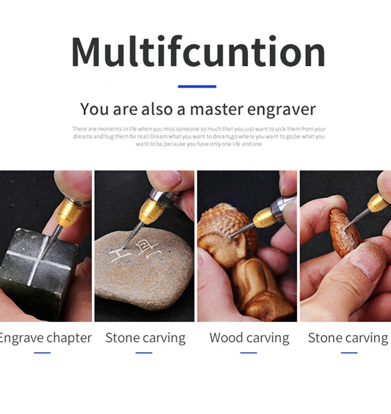 Versatile Tool: Ideal for engraving, carving, and micro-carving on a variety of materials such as stone, wood, olive pits, plastic, glass, ceramics, and more.