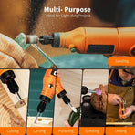 【5-Speed Setting】The cordless rotary tool can realize 5-speed adjustment(5000/7000/9000/12000/15000 RPM),which makes it easier to adjust to a suitable speed to meet the power demand in different scenarios. It allows you to sand in stages safely and carefully. Even people without any experience can easily get started and control the speed easily. Micro rotary tool make your creation handy
