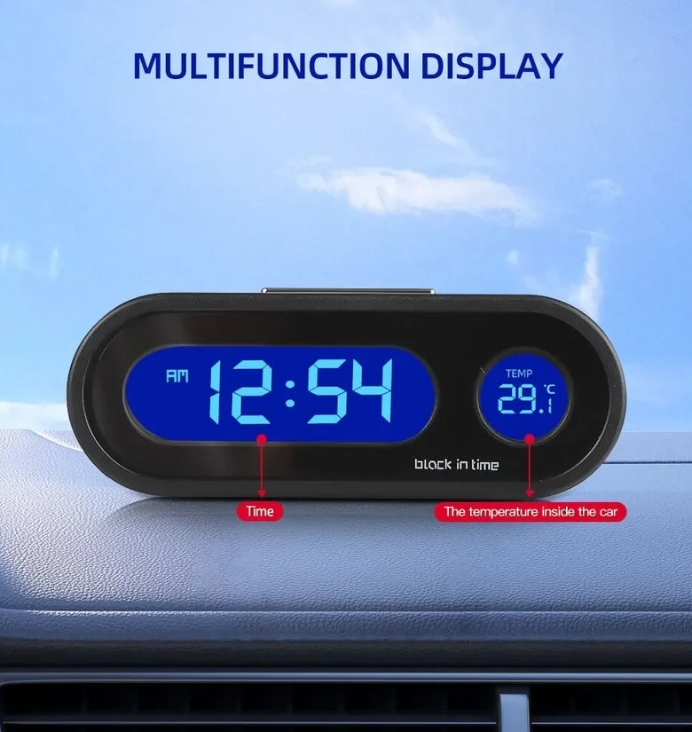 • Mini Electronic Car Clock Watch Dashboard Clock Night Light Temperature LCD Backlight Digital Display Time Watch Auto Dashboard Clocks Luminous Thermometer