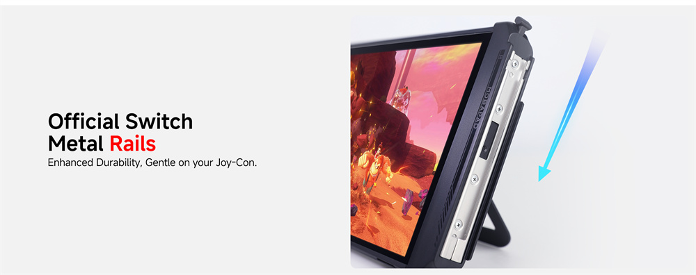 6. Metal Rails: Designed with official Switch rails to ensure smooth connection and gentle handling of Joy-Con.