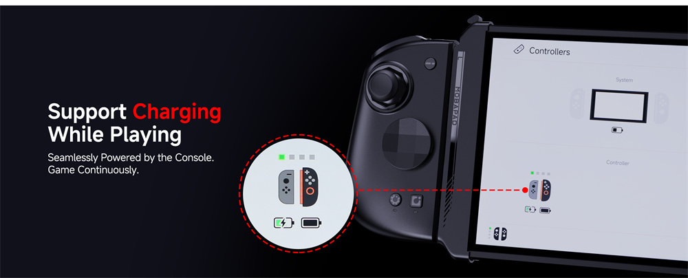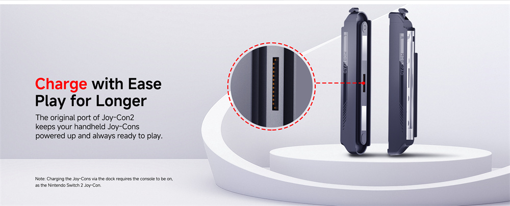 1. Convenient Charging: Keeps Joy-Con powered through the original port, enabling continuous play.