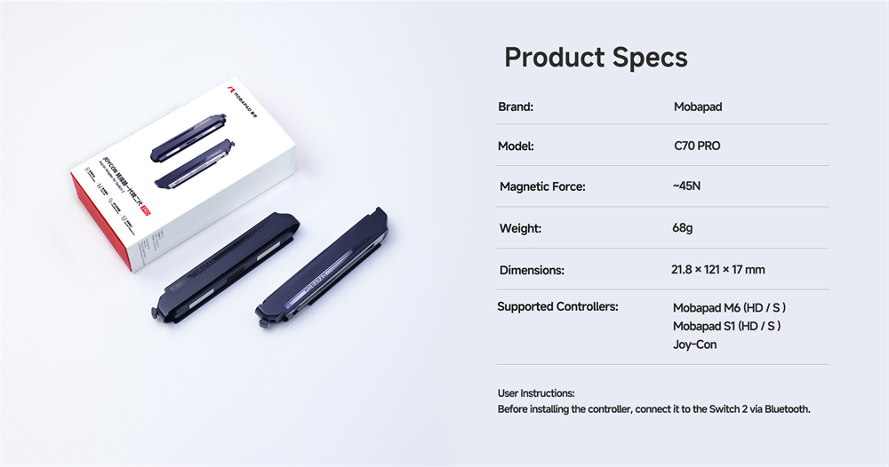 • Mobapad C70 PRO JoyCon Magnetic Charging Adapter 45N Magnetic Force Split Gamepad Adapter Compatible with Mobapad M6 S1 and NS Joy-Con Gaming Accessories