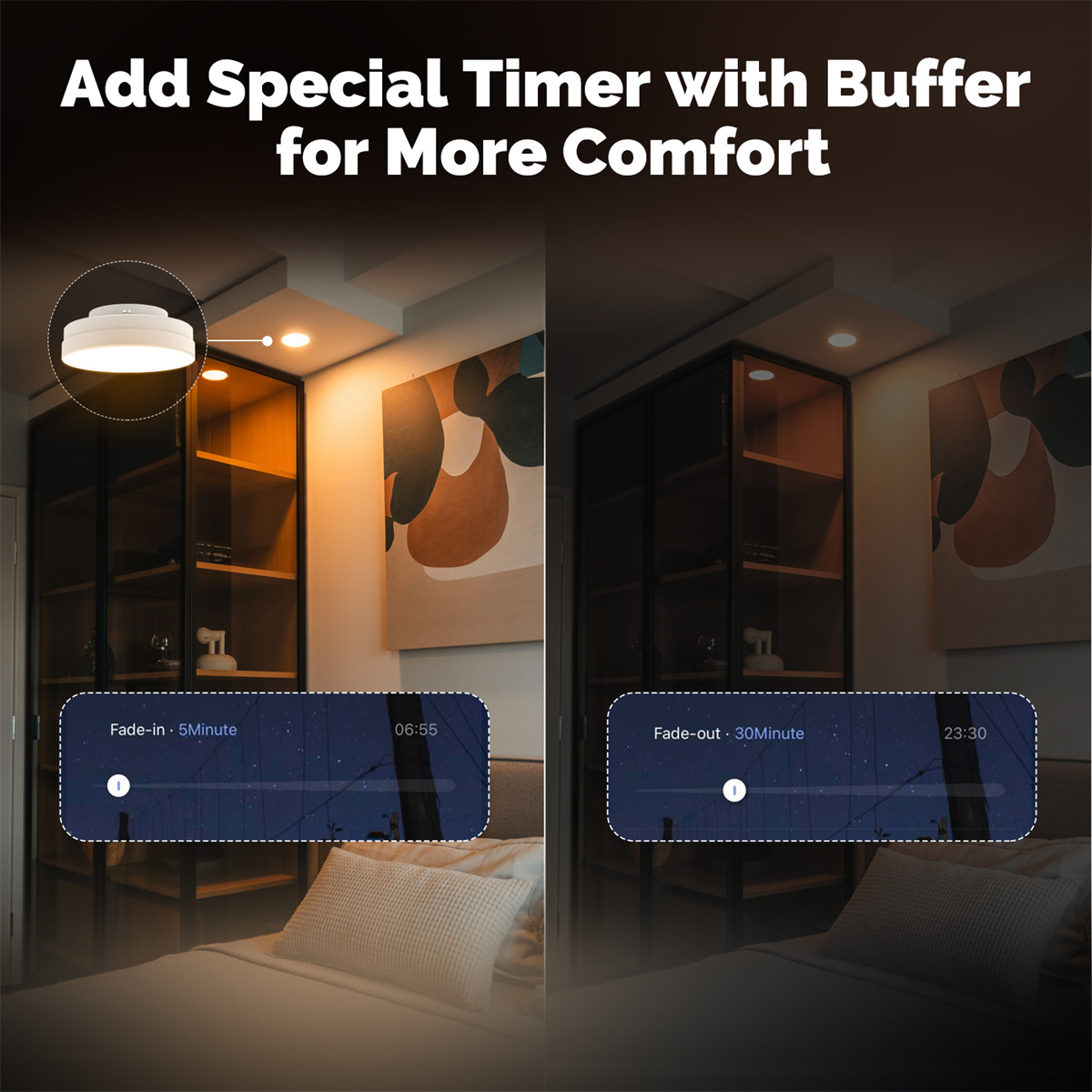 6. Timer & Schedule Settings: Include fade-in/fade-out timers and biological rhythm modes for personalized comfort throughout the day.