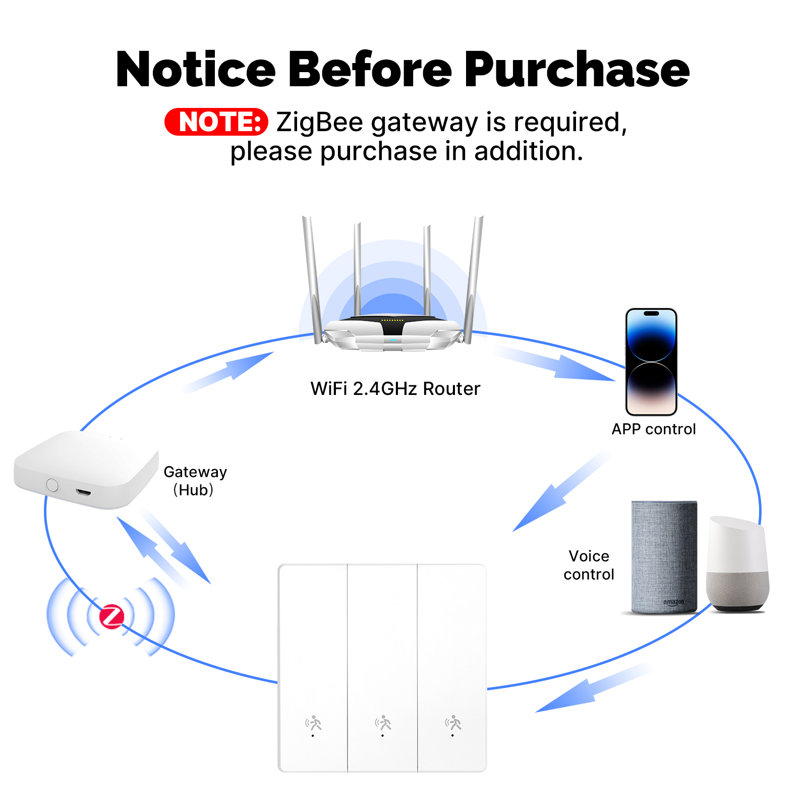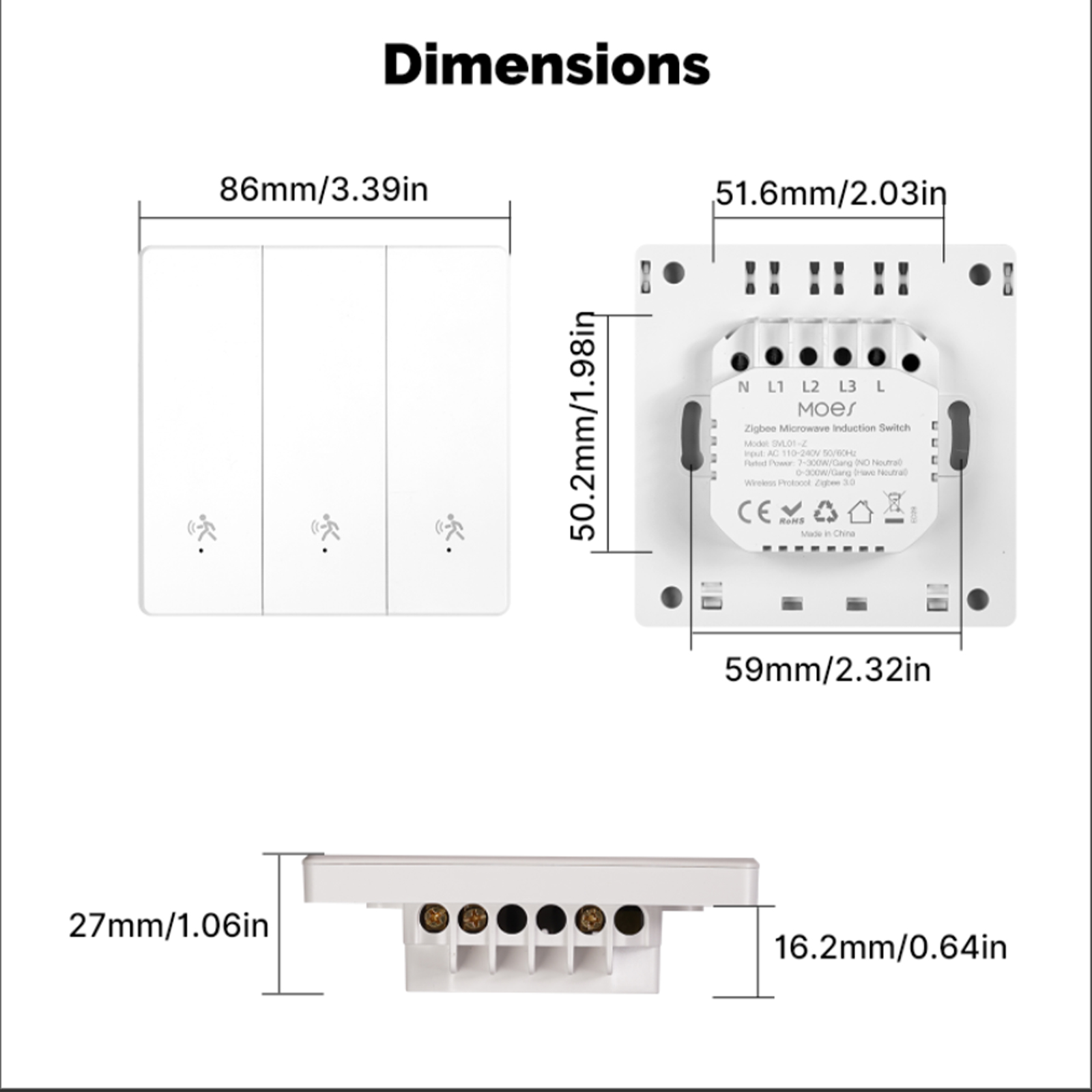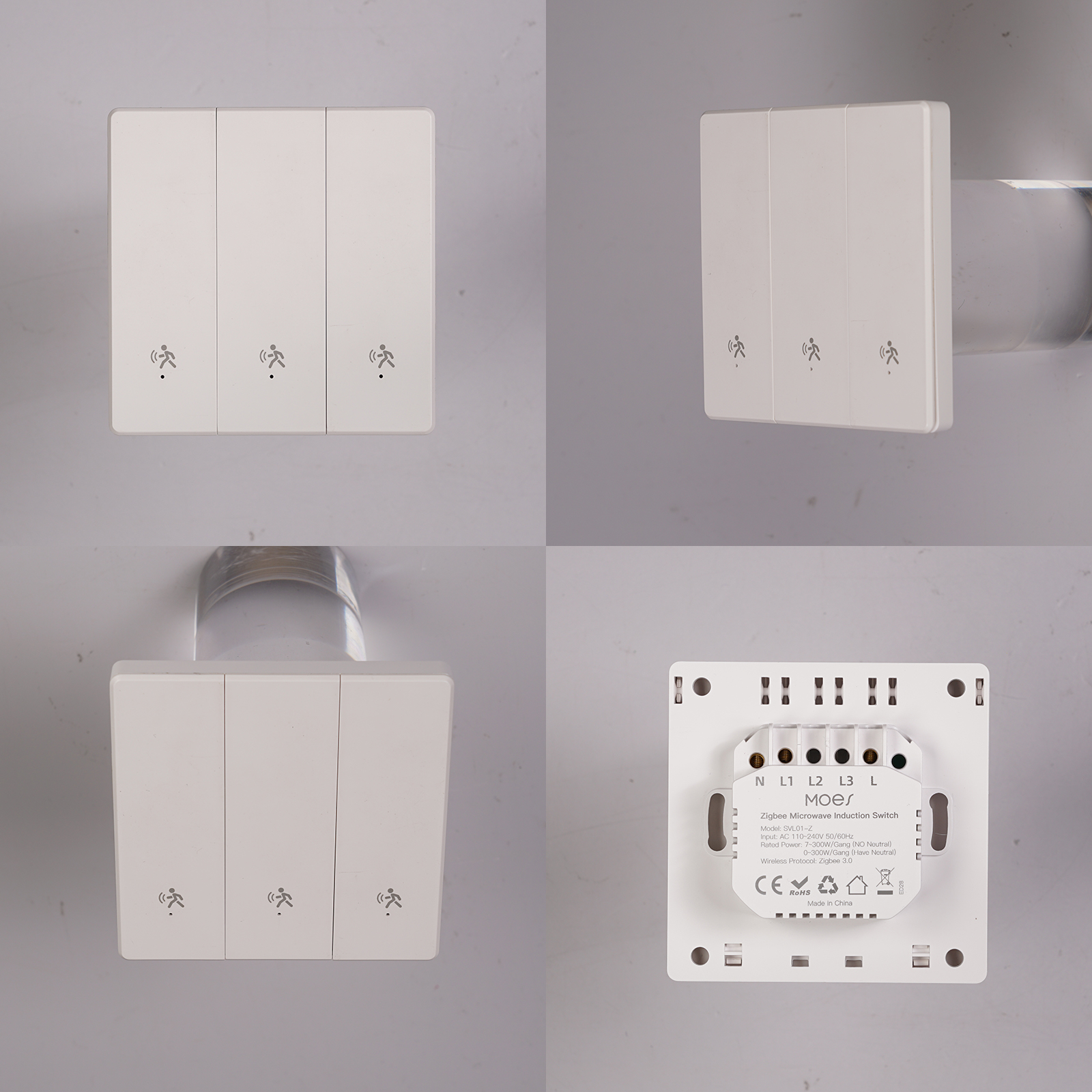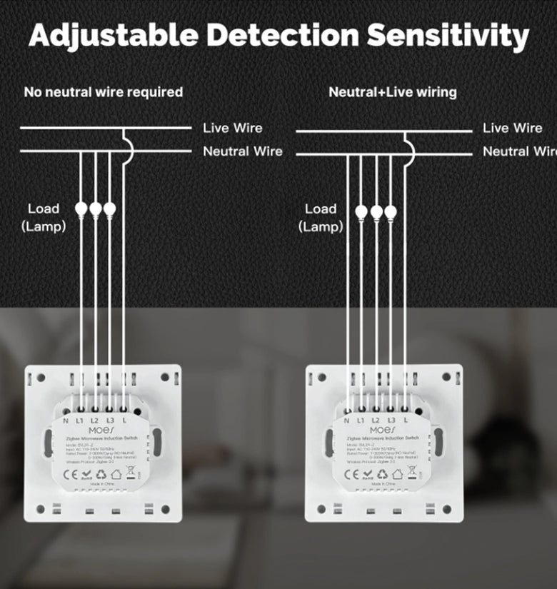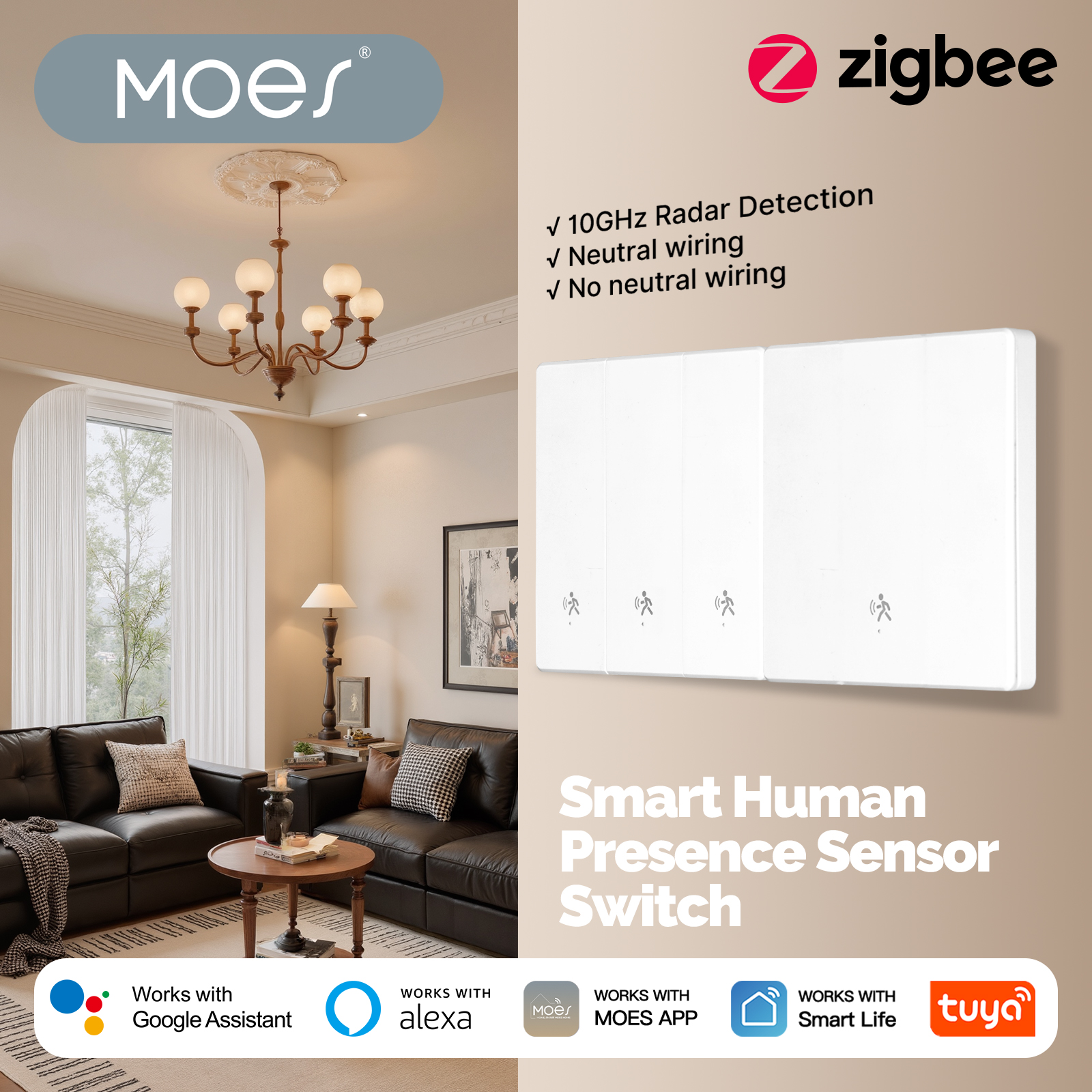 • MOES SVL01-Z Tuya Zigbe Smart Human Presence Switch 10GHz mmWave Radar Detection Timing Function Wall Light Voice Control with Alexa Google Home