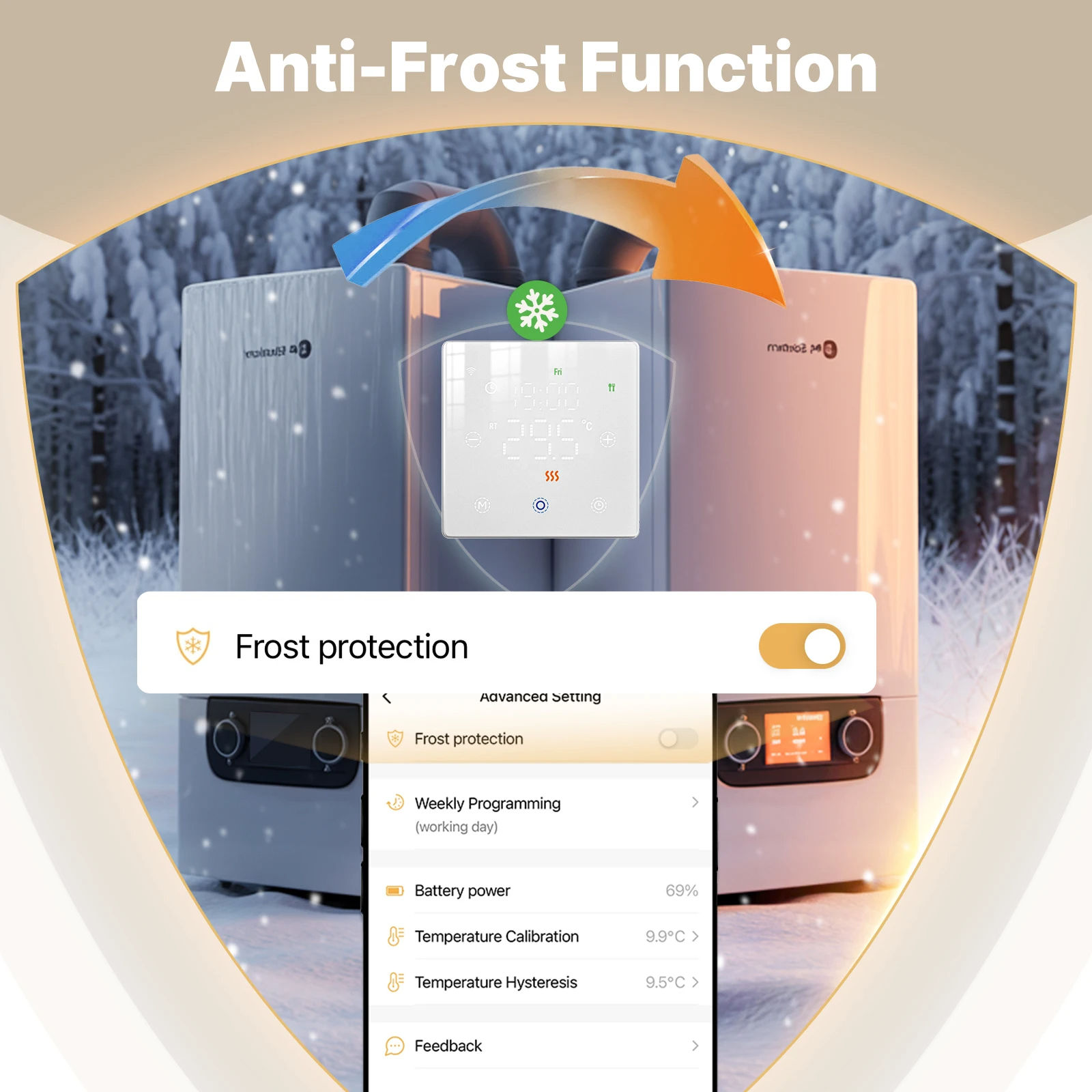 5. Advanced Safety Features: Includes child lock, anti-frost function, and low-battery reminder notifications.