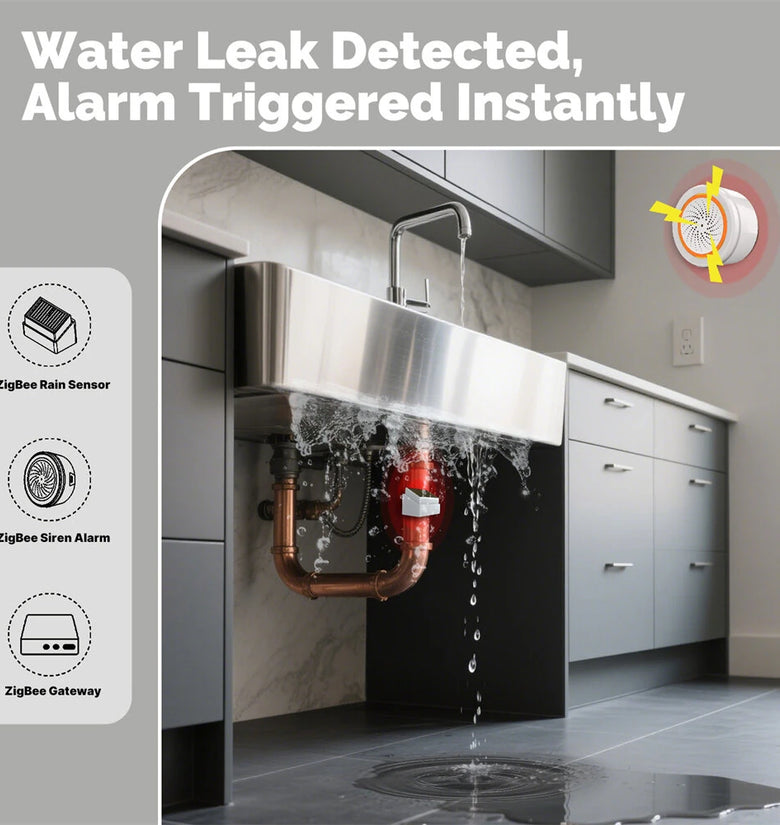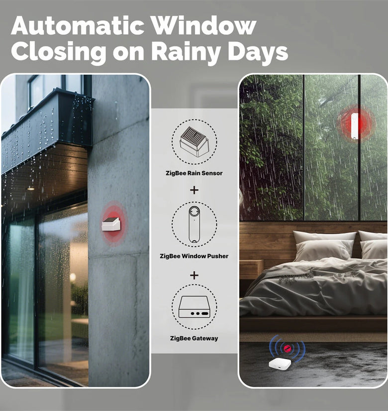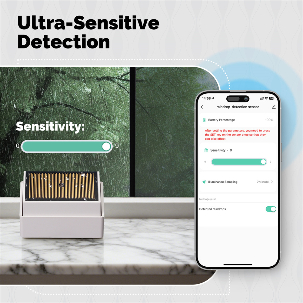 3. Rain Detection: Detects water or leaks in real time, instantly triggering notification or connected devices.