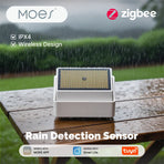 MOES Tuya Zigbe Raindrop Detection Sensor IPX4 Waterproof Wireless Smart Home Water Leak Detector Real Time Alert Smart Life APP for Indoors Outdoors Water Leakage Sensor