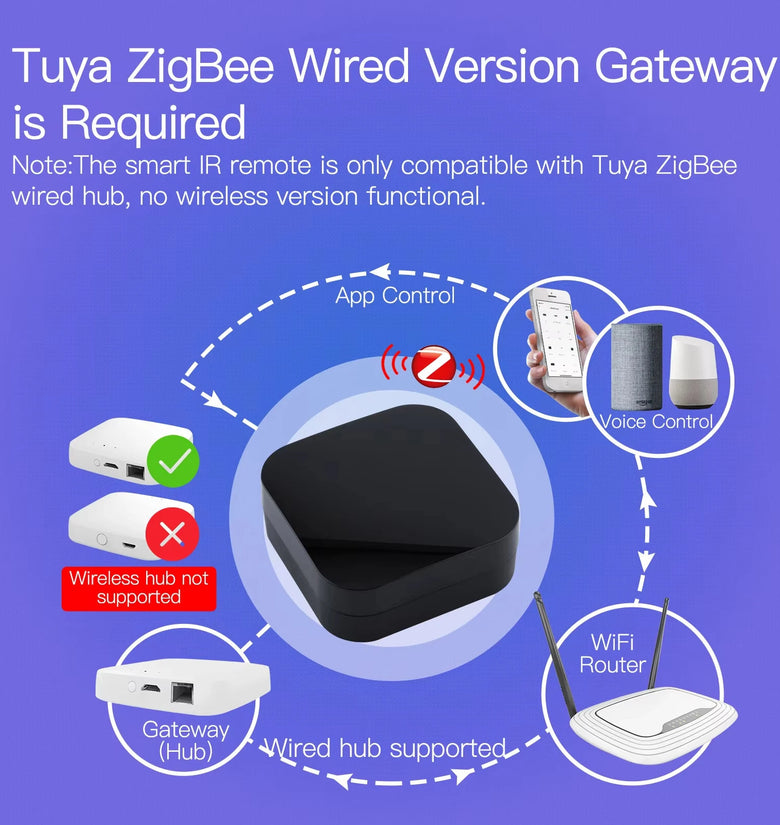 1. Tuya ZigBe Wired Gateway Required: Requires a Tuya ZigBe wired gateway for APP configuration and smart controls. Note: Only compatible with wired hubs, not with wireless hubs.