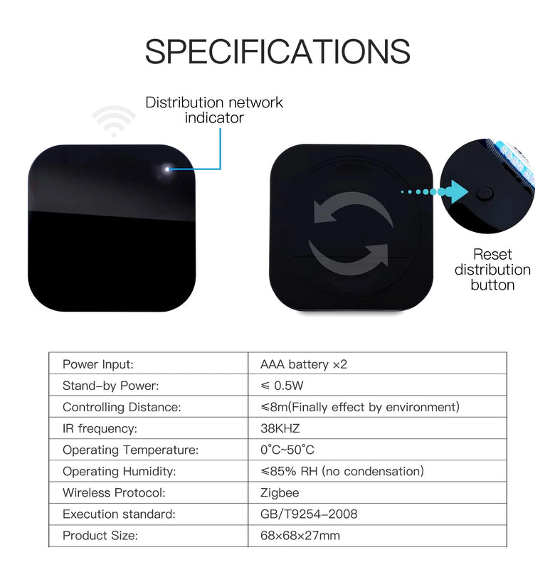 4. Customized DIY Copy Function: Allows programmable DIY learning for devices not listed in the Smart Life APP, enabling compatibility with most infrared remote control devices.