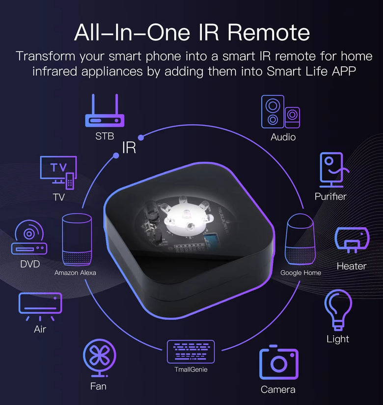 3. Hands-free Voice Control: Use voice commands via Alexa or Google Home to control various infrared devices like A/C, fans, and TVs.
