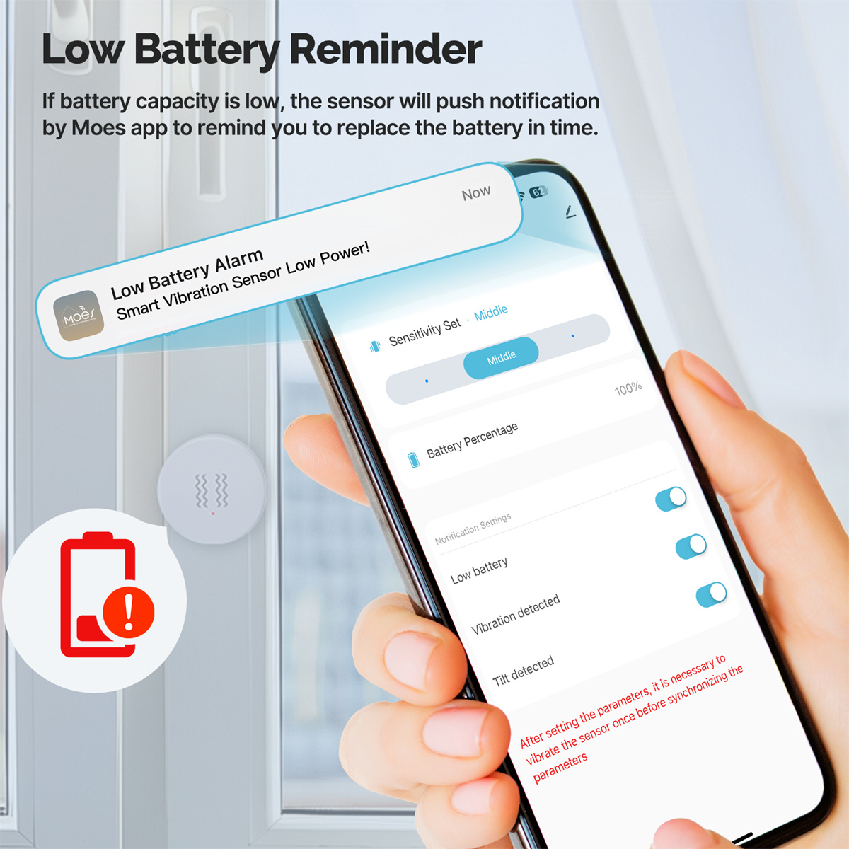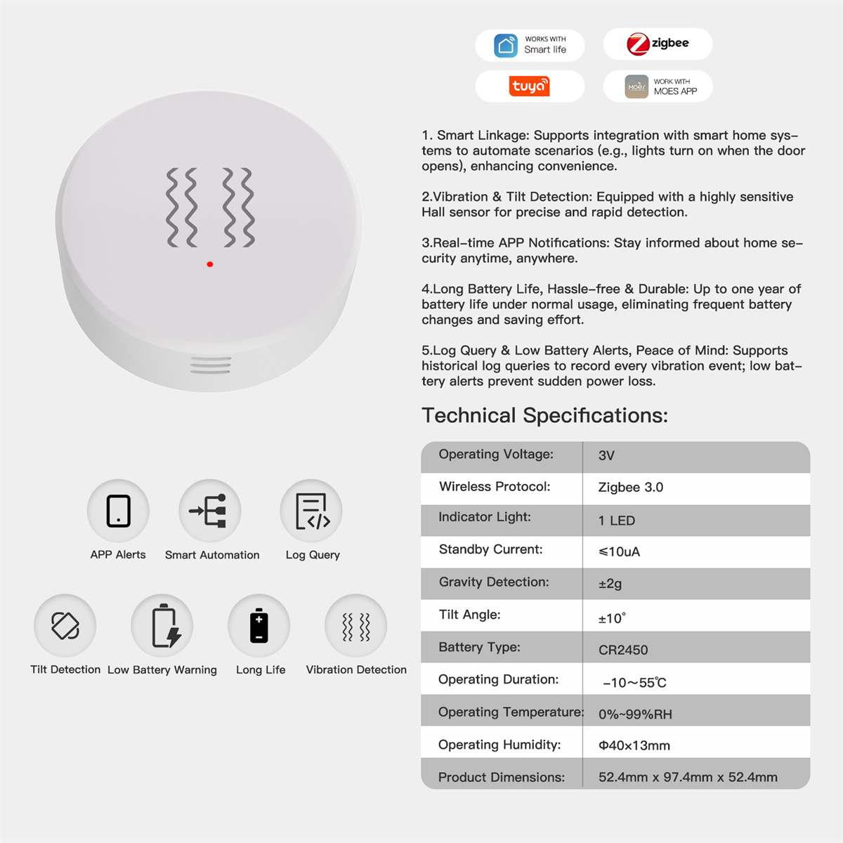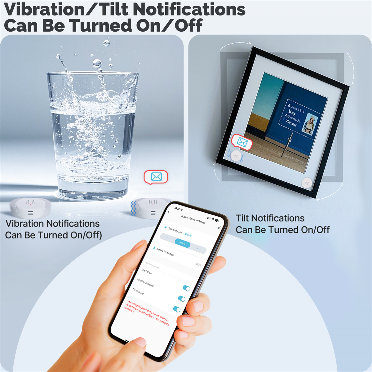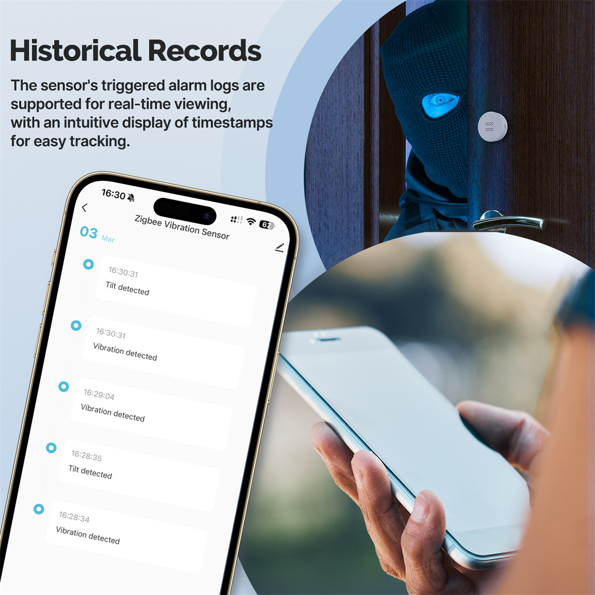 3. Remote Alerts via App: Provides real-time push notifications for vibration or tilt activity, enhancing home monitoring.