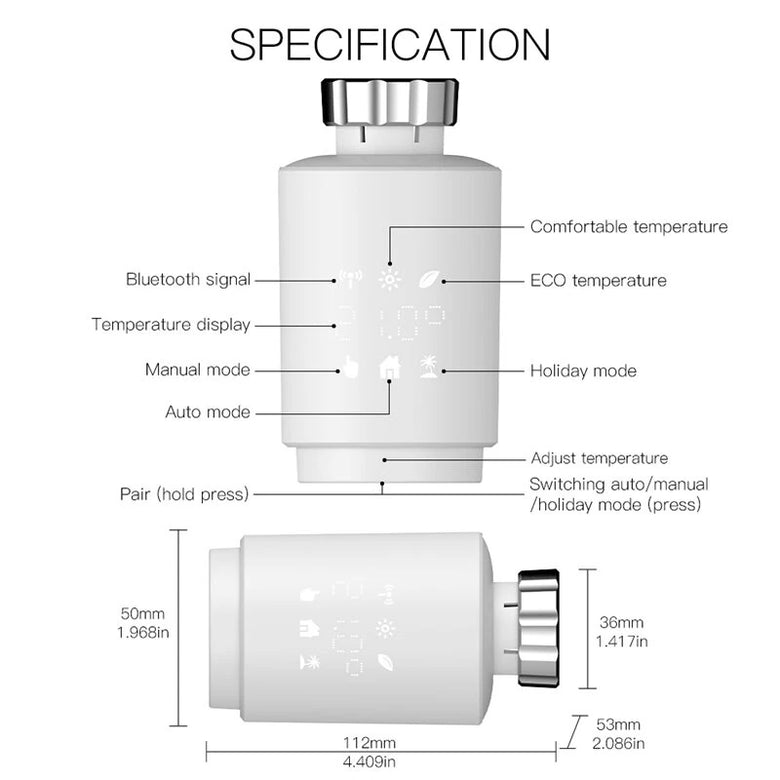 1. Soft Touch Design with Upgrades: Features a new mini elegant design with a clear LED data display for easy readability. Powered by two AA batteries, designed to control the radiator valve efficiently.