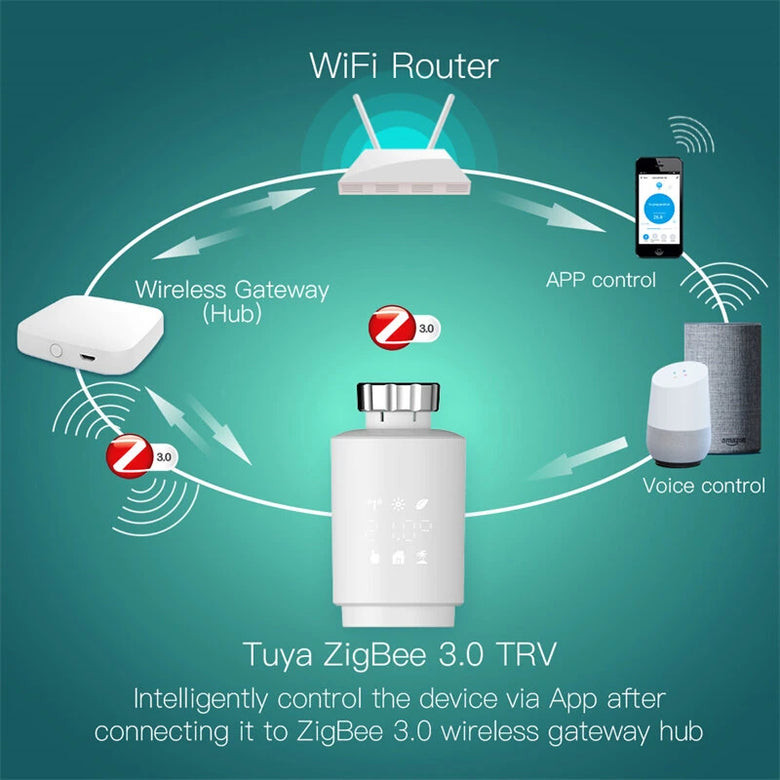 • MoesHouse TV02/TV05 Tuya ZigBe Radiator Actuator Valve Smart Thermostat Temperature Controller External Sensor TRV Voice Control Alexa Google Assistant