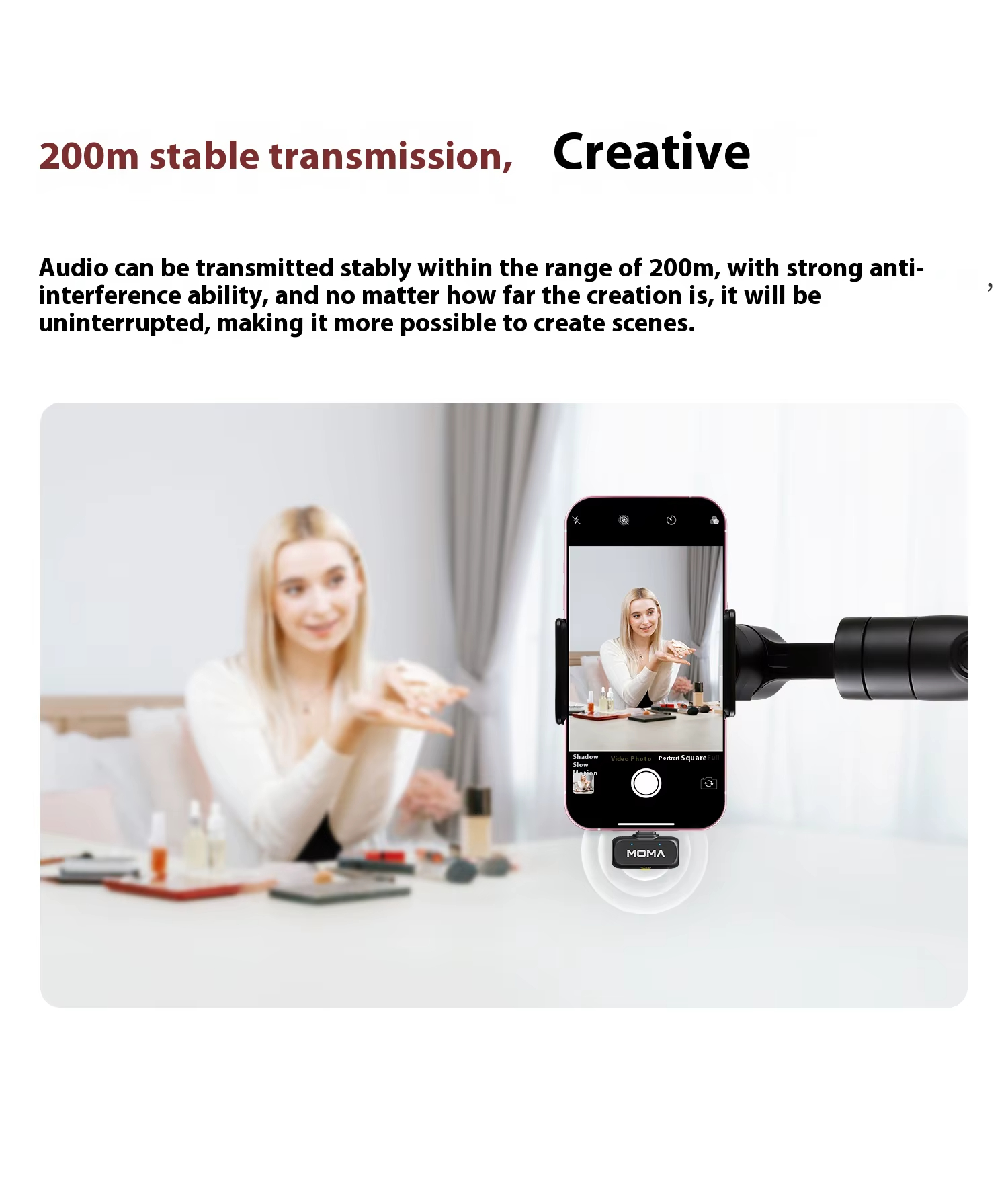 6. 200m Stable Transmission: Delivers interference-free signals for uninterrupted recordings, even at long distances.