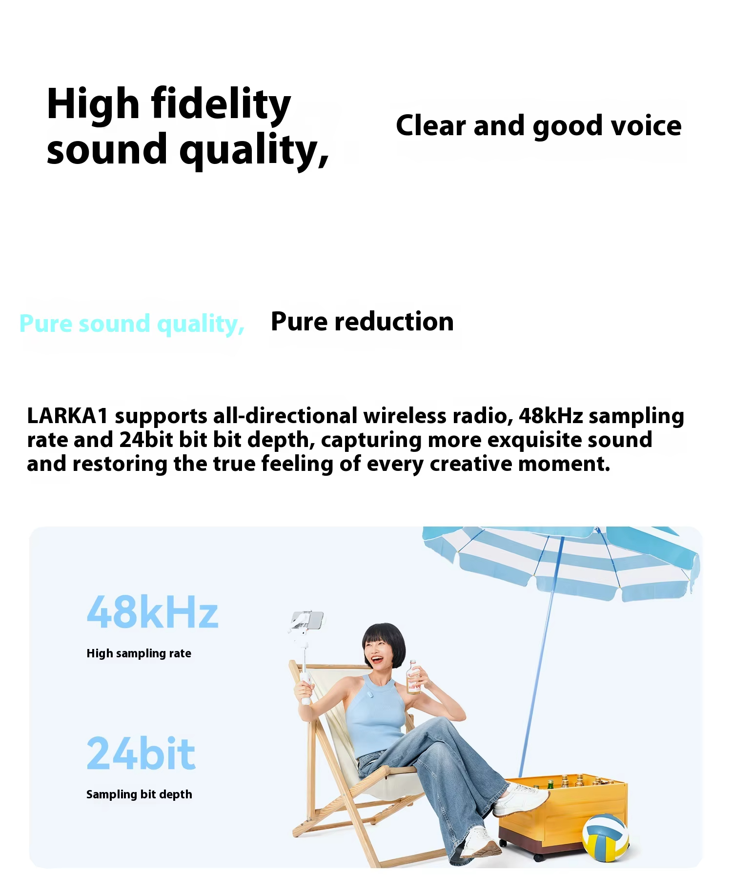 1. High-Quality Sound: 48kHz/24bit sampling ensures precise audio capture with wide frequency response for clear and professional sound.
