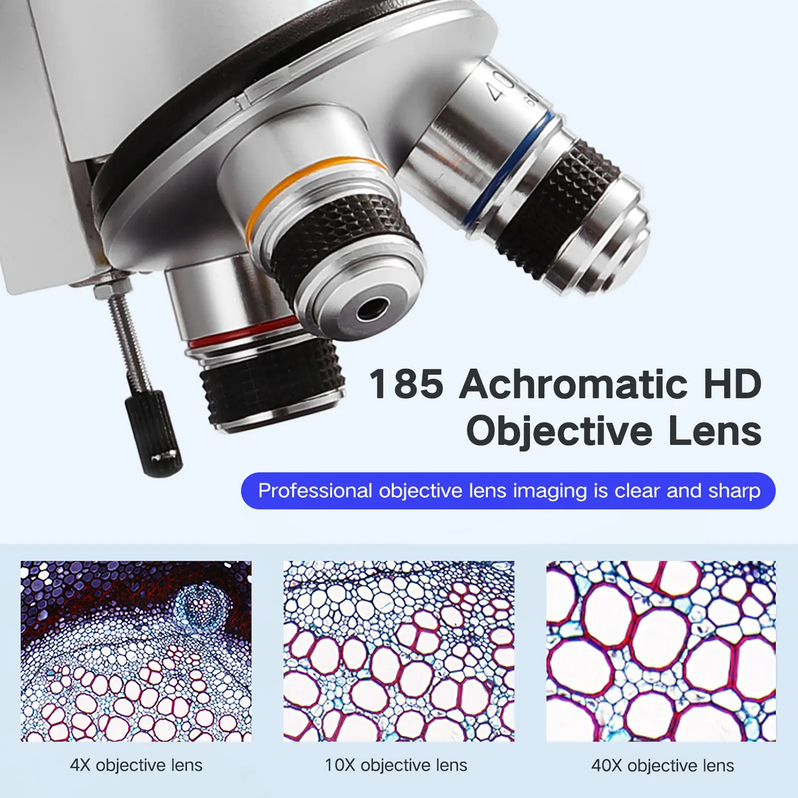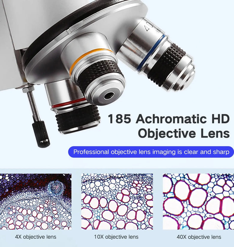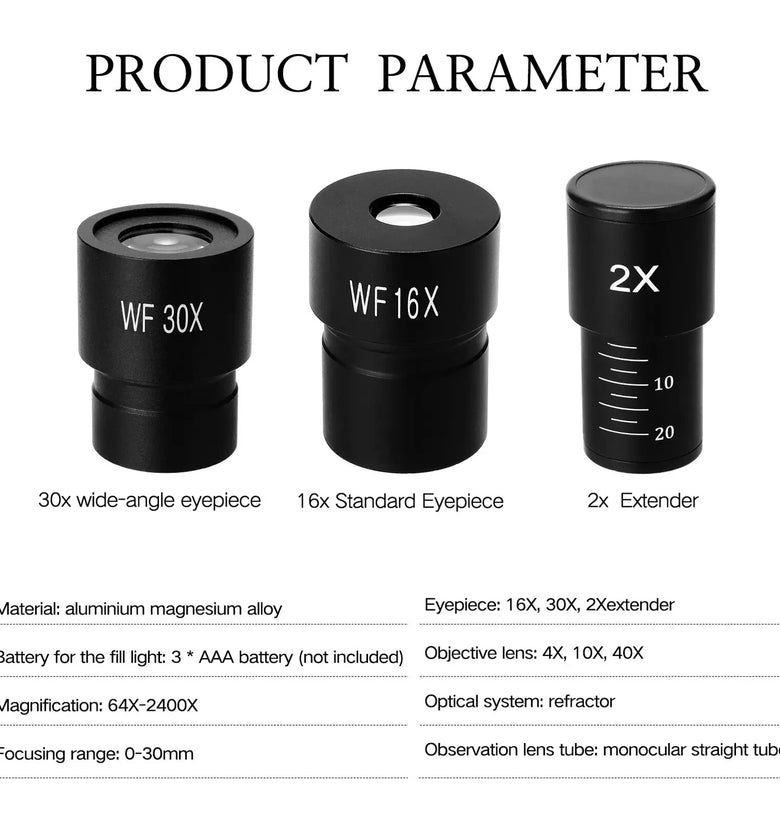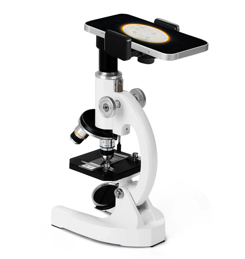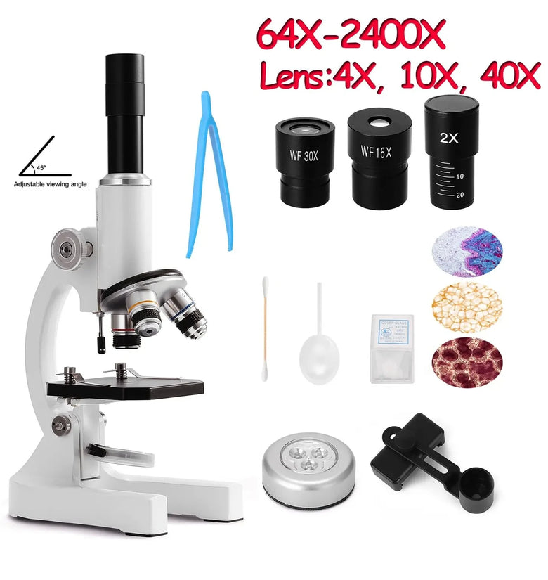 • Monocular Digital Optical Microscope 64X-2400X with Adjustable Zoom Phone Holder Design Fill Light Complete Experimental Equipment for Science Education Biology Experiment
