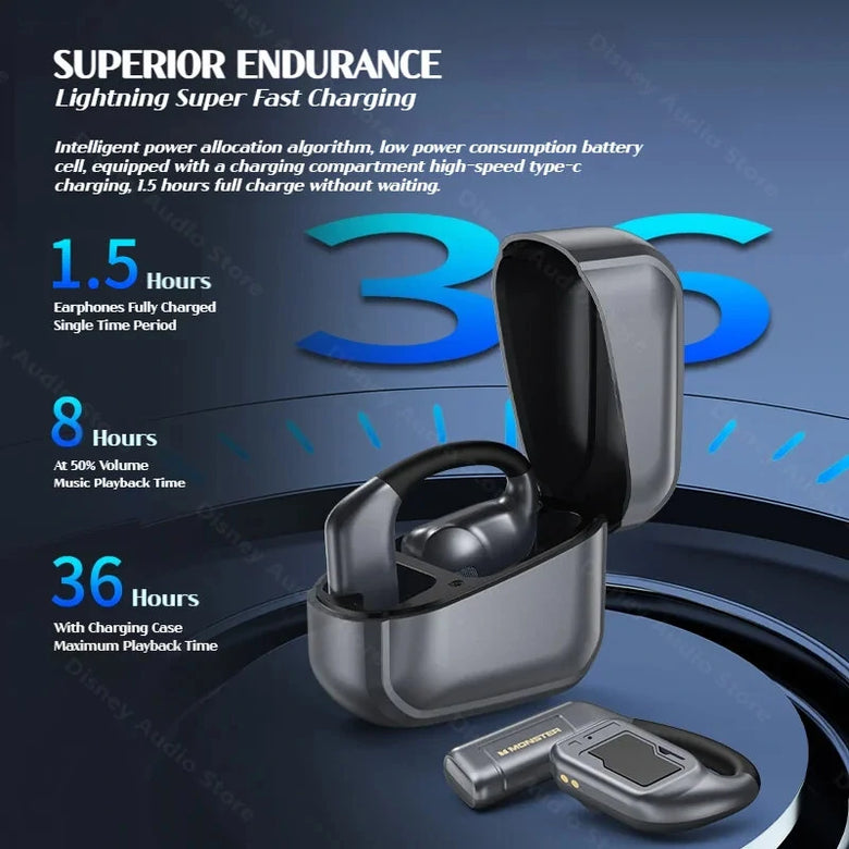 • Monster AC310 TWS Earbuds Wireless bluetooth 5.4 Earphone 14.2mm Large Drive Unit HiFi Bass ENC Noise Cancelling 36H Playback Open-ear Earhooks Sports Headset