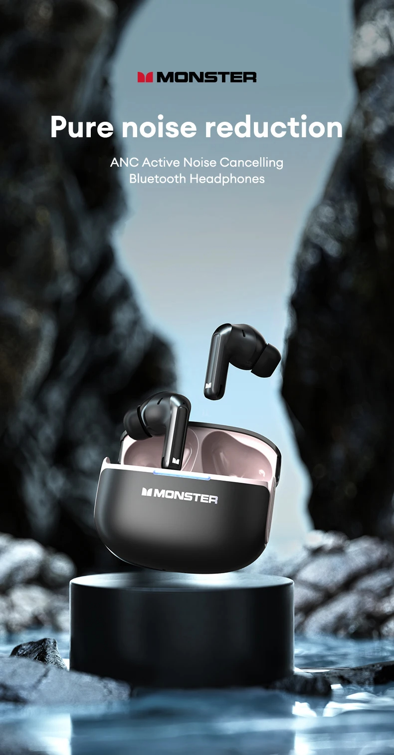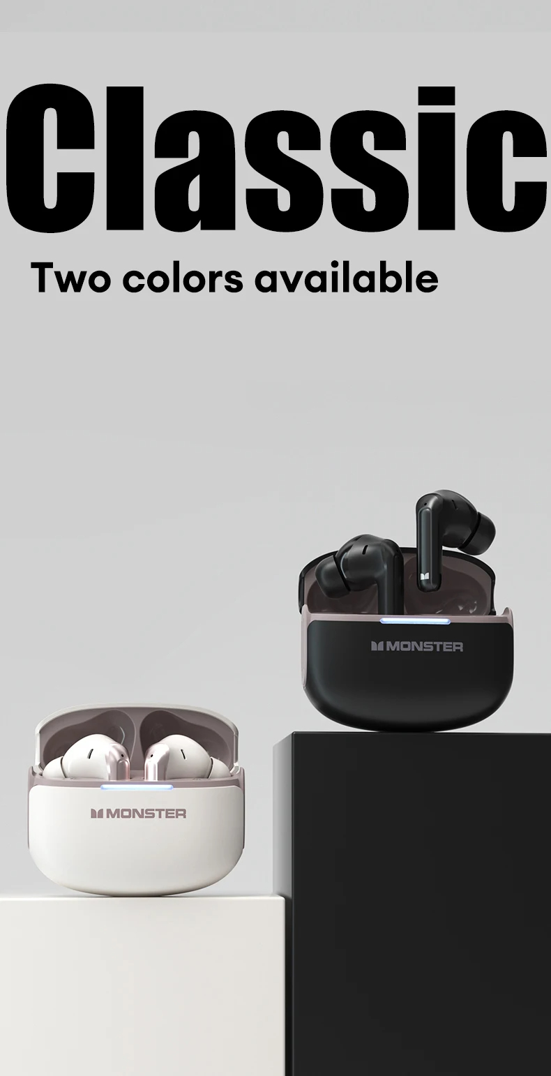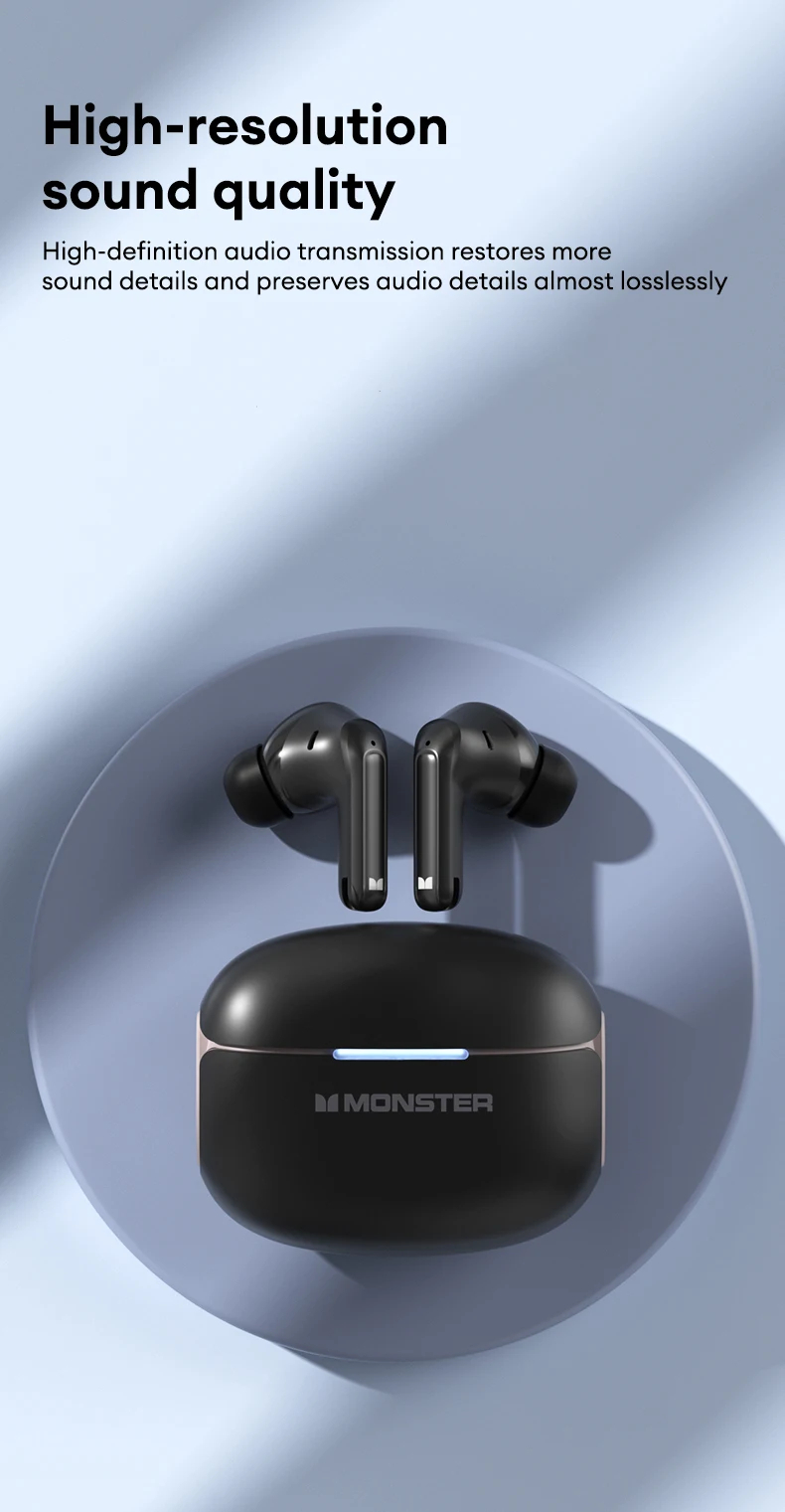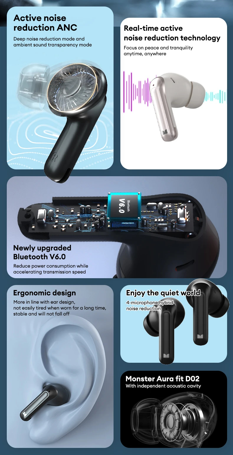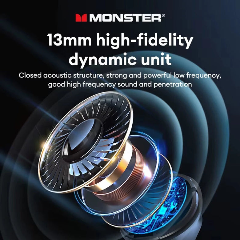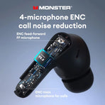 • Monster D02 TWS Earbuds Wireless bluetooth V6.0 Earphone 4-Mic ENC Call Noise Cancelling 13mm Drivers 24H Playback Low Delay Sports Headphones