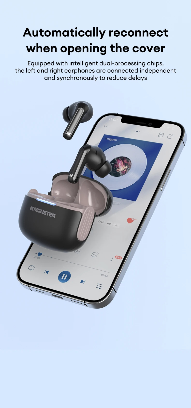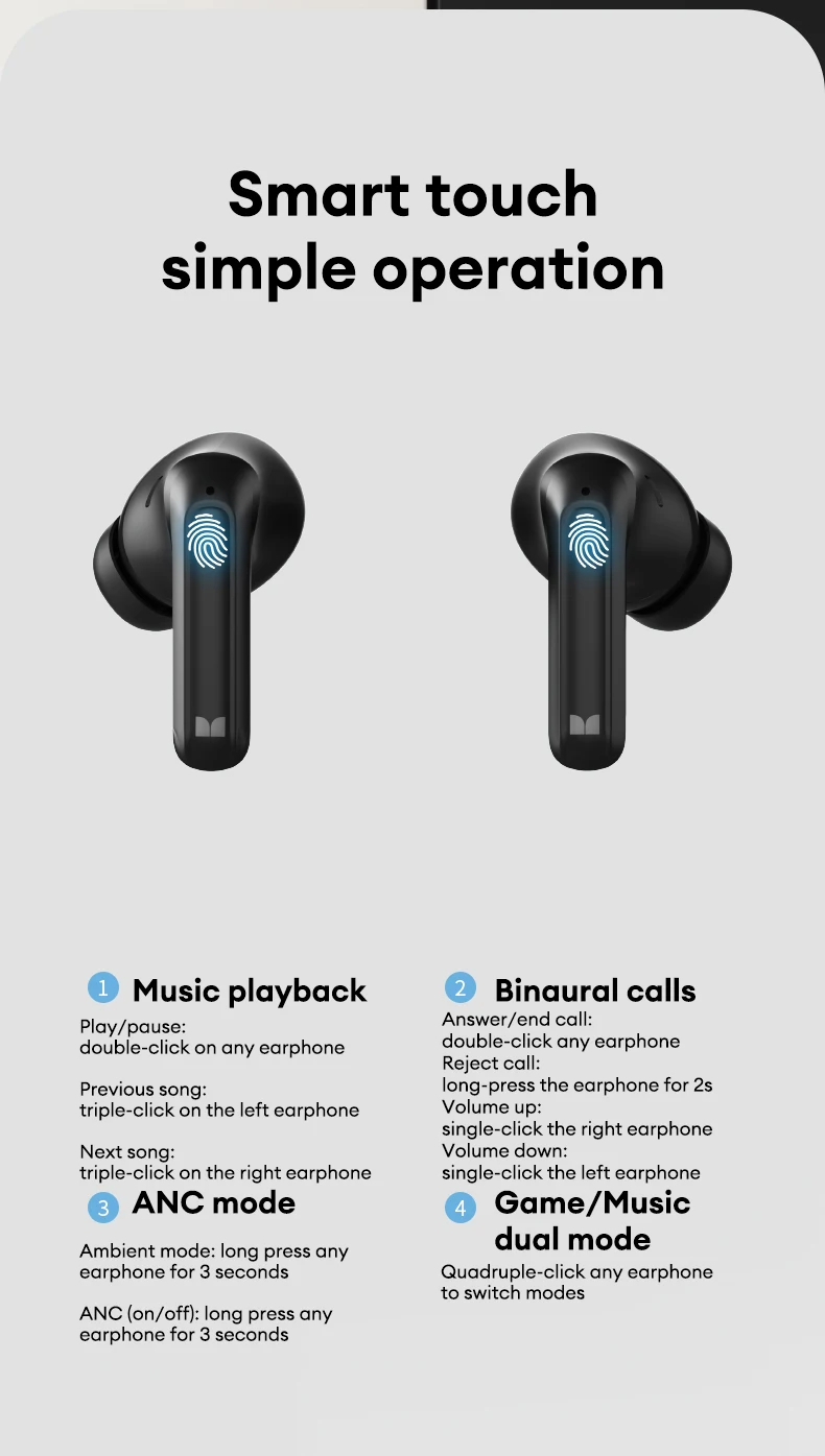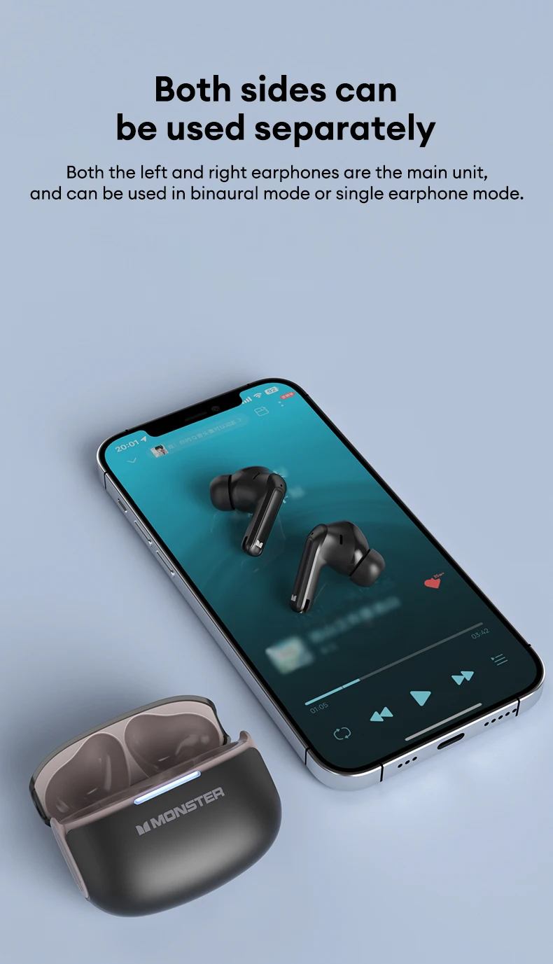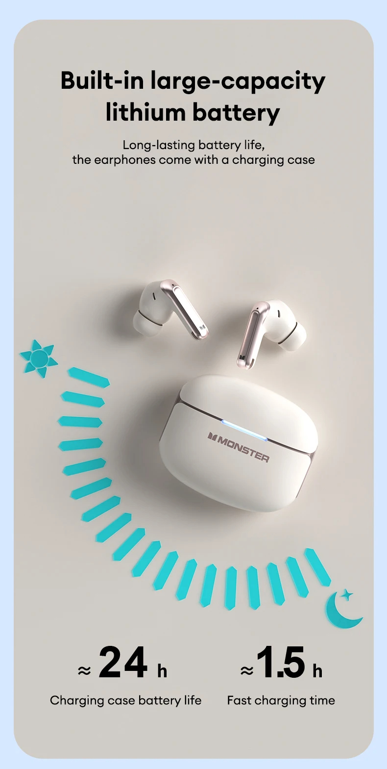 • Monster D02 TWS Earbuds Wireless bluetooth V6.0 Earphone 4-Mic ENC Call Noise Cancelling 13mm Drivers 24H Playback Low Delay Sports Headphones