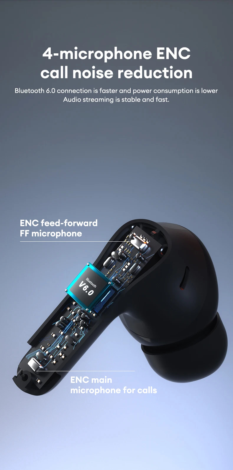 Equipped with the newly upgraded bluetooth 6.0 technology, offering faster transmission speeds, lower power consumption, and steady connectivity for smooth audio streaming.