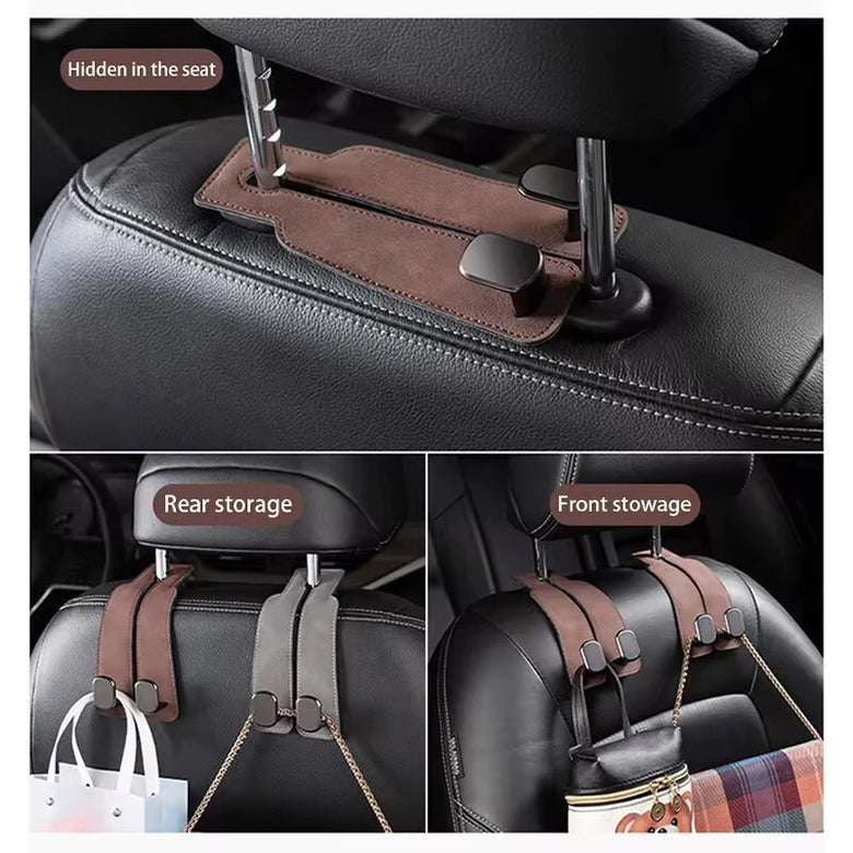 -- This car seat back hook also serves as a phone holder, keeping your phone easily accessible while driving.