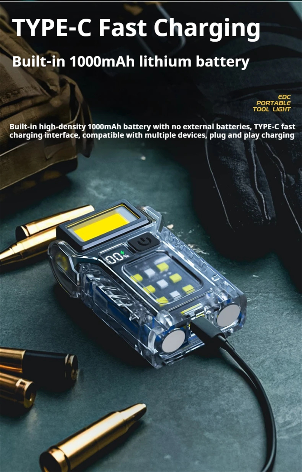 4.Type-C USB Charging: The powerful flashlight features a Type-C USB charging port for fast and convenient recharging anytime, ensuring it's ready when you need it.