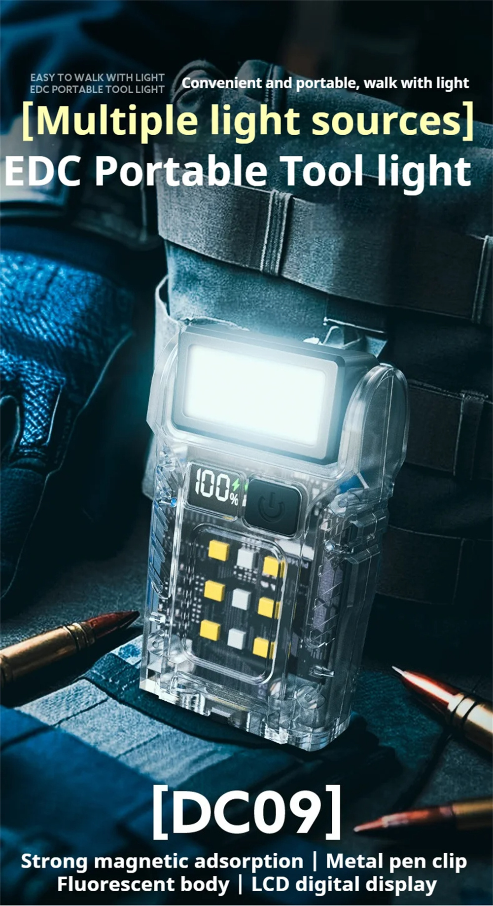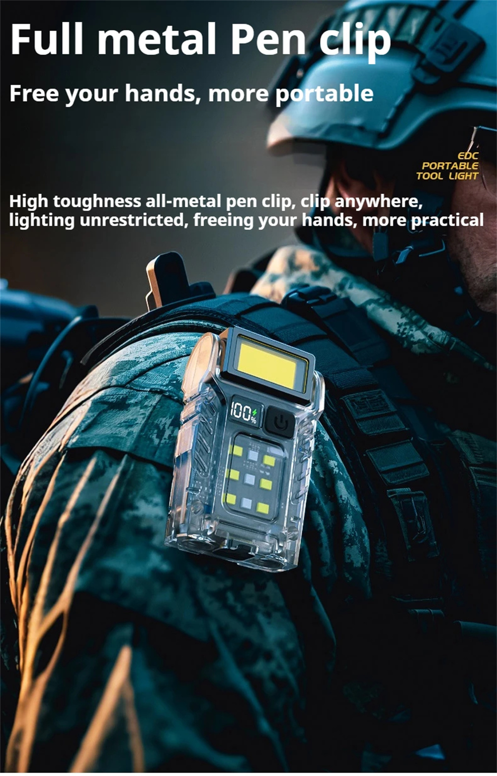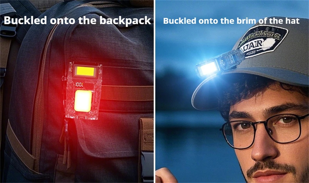 2.Multifunctional Use: This flashlight serves as a hat clip light, camping light, backpack warning lamp, and chest light, catering to various lighting and safety needs in different scenarios.