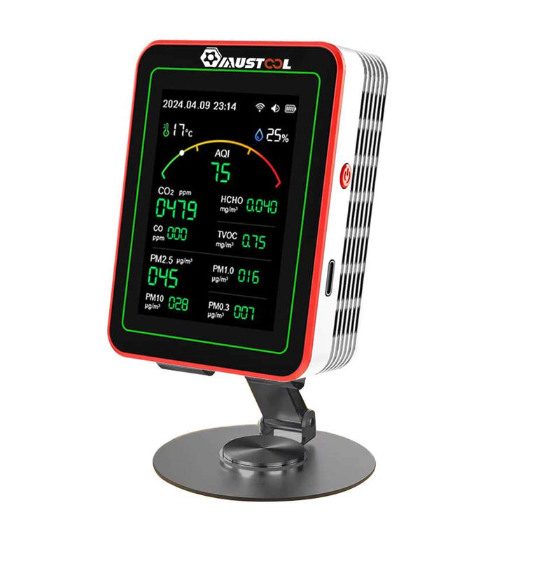 MUSTOOL 15-in-1 Air Quality Monitor Wifi Tuya App 15-in-1 Smart Tester With stand CO2 CO TVOC HCHO PM2.5 PM1.0 PM10 AQI Battery Powered Real-Time Display for Home Office