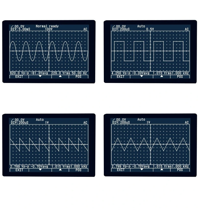 9. The measurement waveform signal is very fast. Just press the AUTO button to display a perfect waveform. The secondary display will display Vpp, Vaug, Vrms at the same time.No need to adjust the signal, period, amplitude first like a traditional oscilloscope