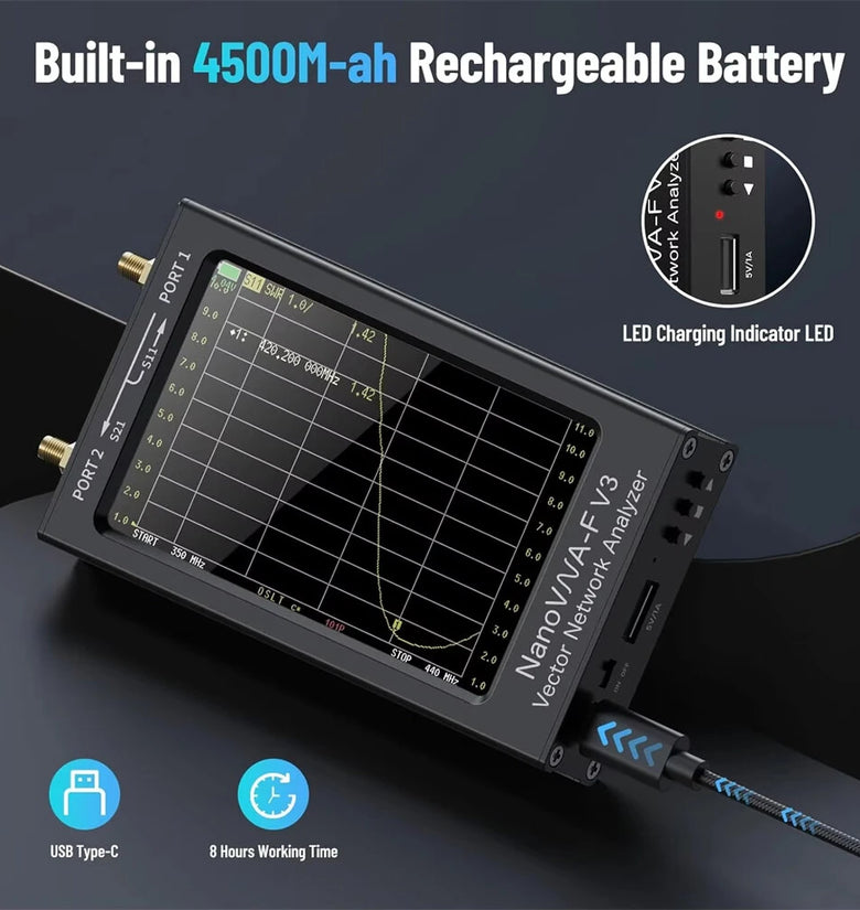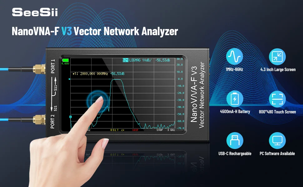 • NanoVNA F V3 Vector Network Analyzer 1MHz to 6GHz TDR Function 4.3 Inch Resistive Touchscreen High Accuracy Fast Sweep Speed VNA Analyzer