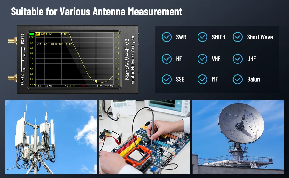 1. Wide Frequency Measurement Range: Covers an extensive frequency range from 1MHz to 6GHz, making it highly versatile for HF, VHF, UHF bandwidth testing and analyses.