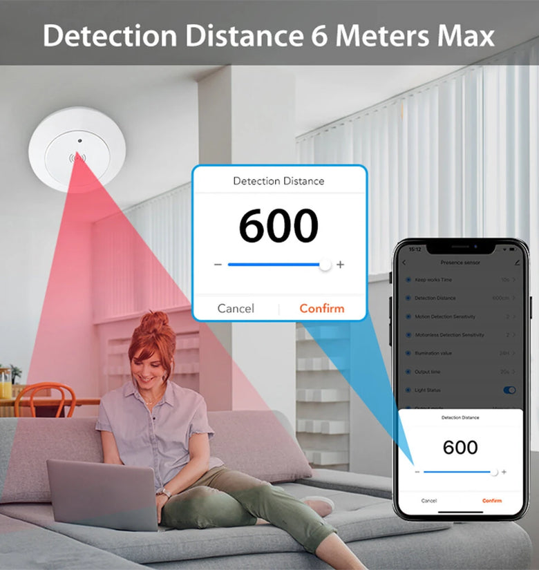 2. 6m Detection Distance & 120° Angle: Wide coverage area with precise detection capabilities using millimeter wave radar technology.