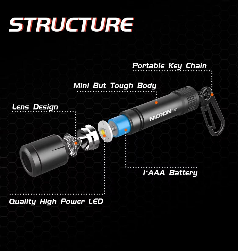 4. High quality construction: Crafted with high-quality materials, the N1 flashlight is designed to withstand the rigors of outdoor adventures.