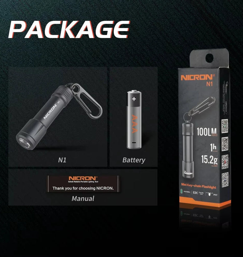 • NICRON N1Micro 100LM Mini LED Keychain Flashlight Outdoor Charging Key Chain Light Lamp Waterproof IPX7 For EDC Torch