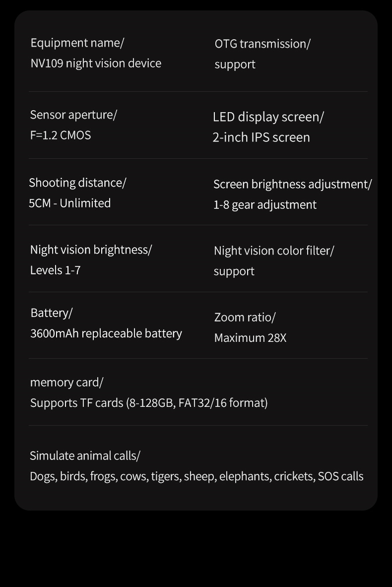 1. Day and Night Vision: Equipped with advanced functionality for both daytime and nighttime use, offering bright and clear images in low-light environments.