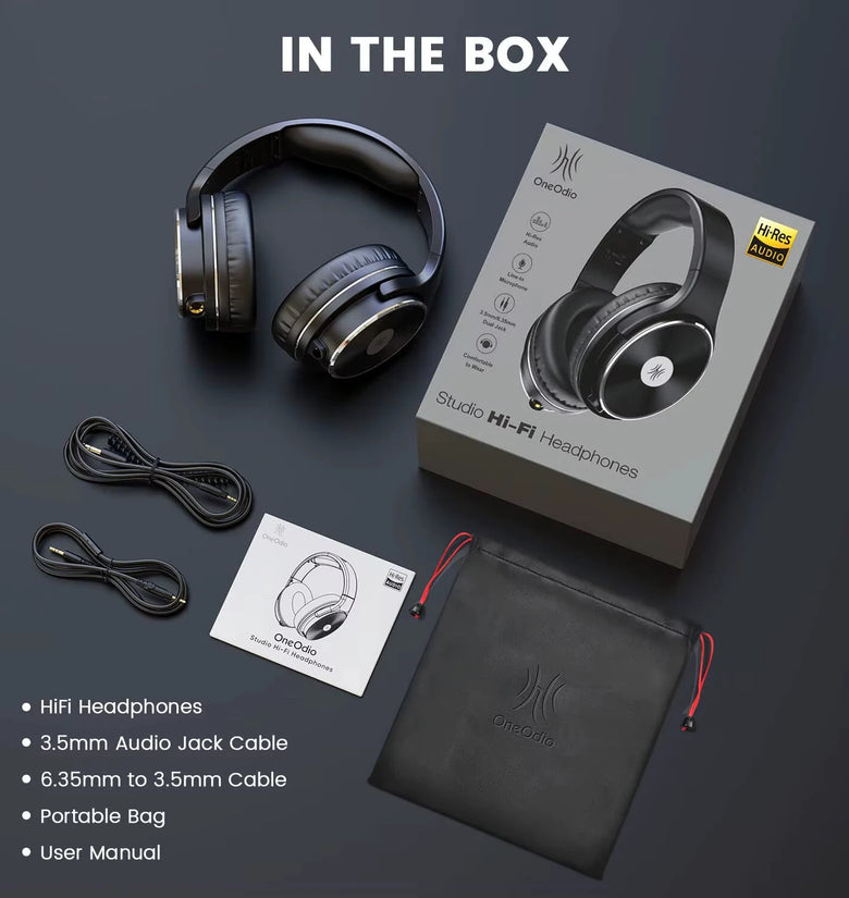 1x HiFi Headphone 1x 3.5mm Audio Jack Cable 1x 6.35mm to 3.5mm Cable 1x Portable Bag 1x User Manual |