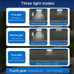 Lighting Time(6000mAh): 8h of Solar Charging (Sufficient Sunlight) can support 200 times induction lighting/ 6~8h dim light/ 3~4h of constant light; 5~6h USB charging can support 500 times induction lighting/ 30~40h dim light/ 8~10h of constant light