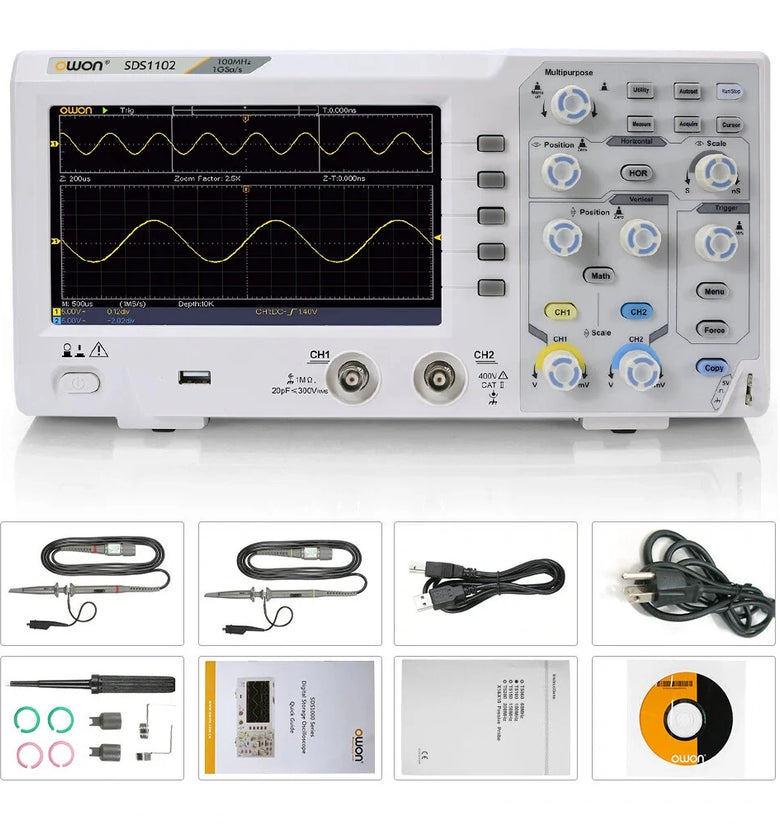 OWON SDS1102 Oscilloscope 2-Channel Digital Oscilloscopes 100MHZ Bandwidth 1GS/s High Accuracy Oscilloscope