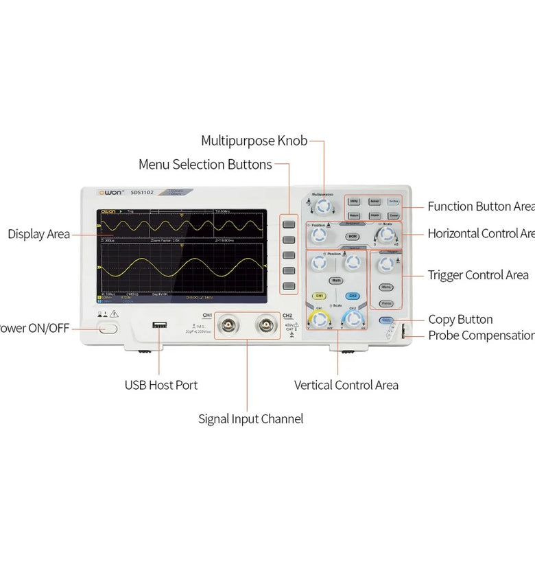 • OWON SDS1102 Oscilloscope 2-Channel Digital Oscilloscopes 100MHZ Bandwidth 1GS/s High Accuracy Oscilloscope