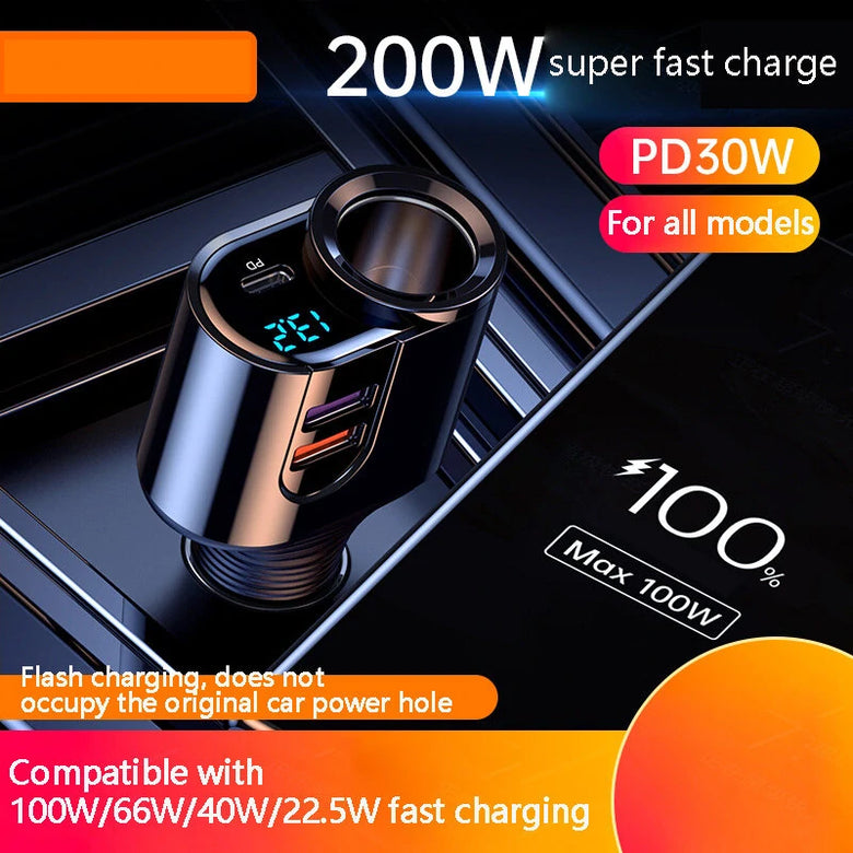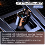 • PD30W+80W+100W Car Fast Charger LCD Screen Dispaly Compatible with 100W/66W/40W/22.5W Super Fast Charge