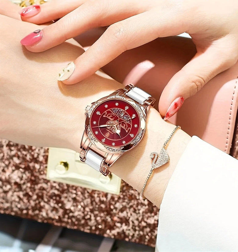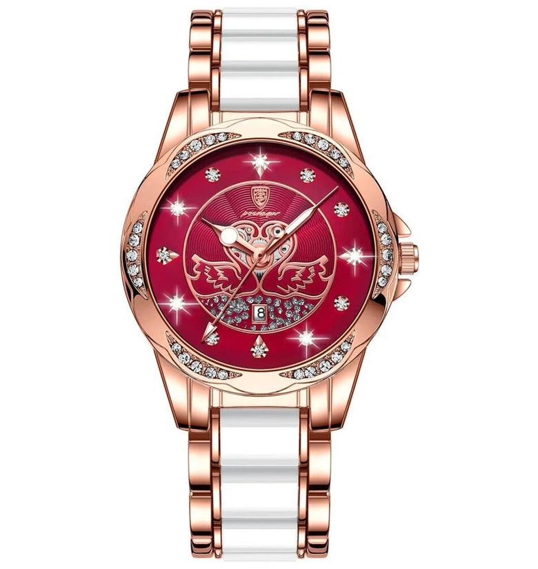 • POEDAGAR Women's Luxury Rhinestones Swan Quartz Watch Waterproof Luminous Fashion Date Dial Analog Ceramic Band Wrist Watch