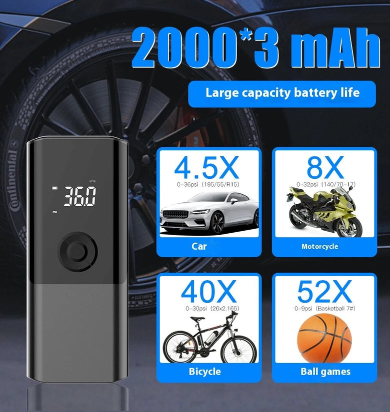 - Efficient Inflation: With an air pressure flow of 25L/Minute, this air pump can rapidly inflate your vehicle's tires, bicycle tires, and sports balls, ensuring you're back on the road or field in no time.