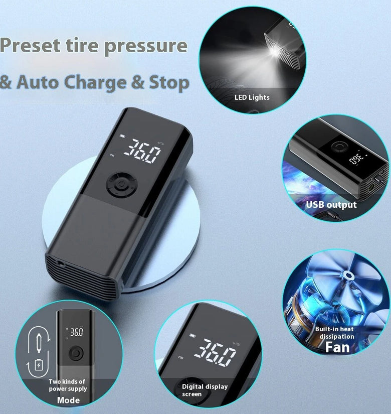 - Multifunctional Design: Equipped with a digital tire pressure gauge and USB charging port, this air pump serves dual functions, allowing you to monitor tire pressures accurately and charge your devices simultaneously.