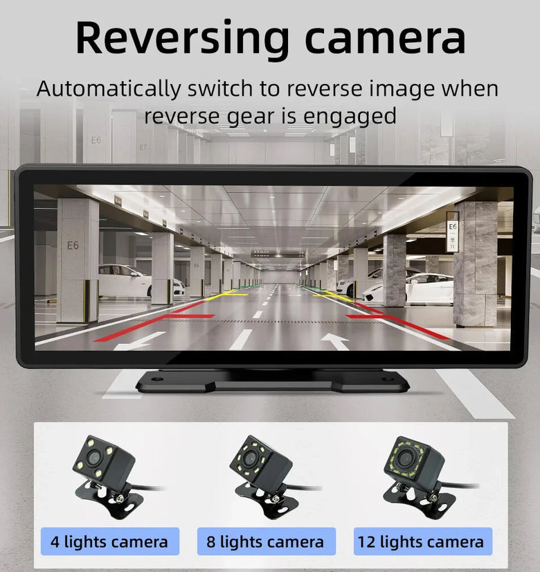 • Portable Car MP5 Player Wireless CarPlay Android Auto 10.26 Inch HD IPS Display Bluetooth WiFi Rear View Support Easy Installation USB Connectivity