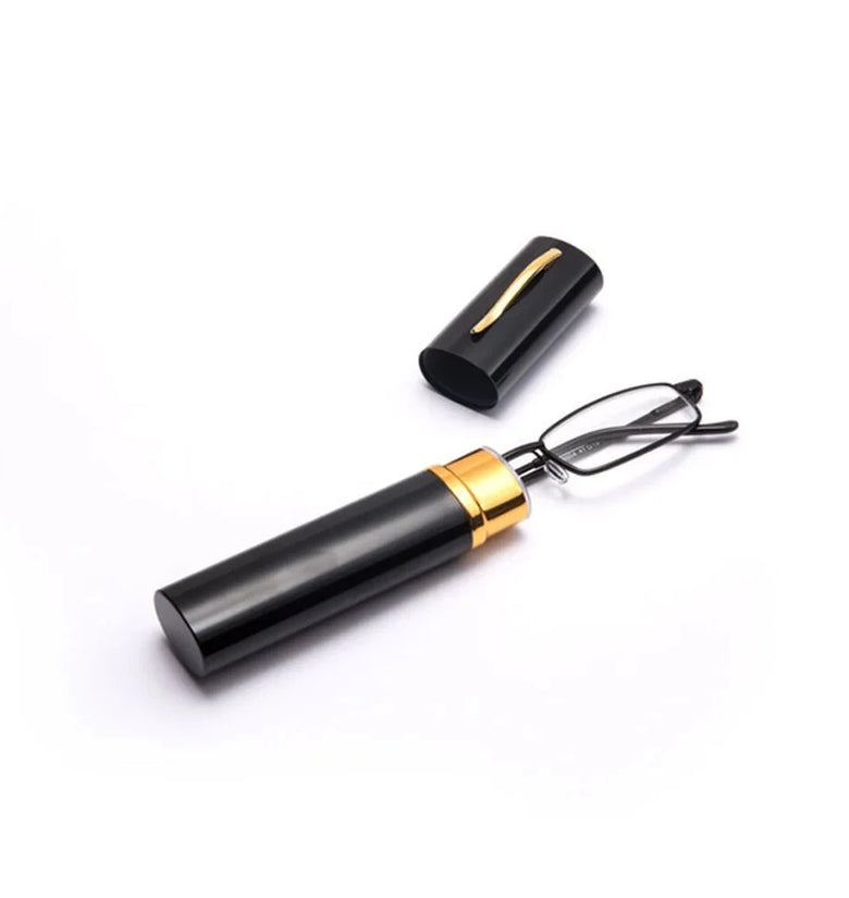 • Portable Mini Lightweight Reading Glasses with Pen Tube Case Anti-blue Light Presbyopic Glasses Metal Case Women Men Eyeglasses +1.5-+3.5