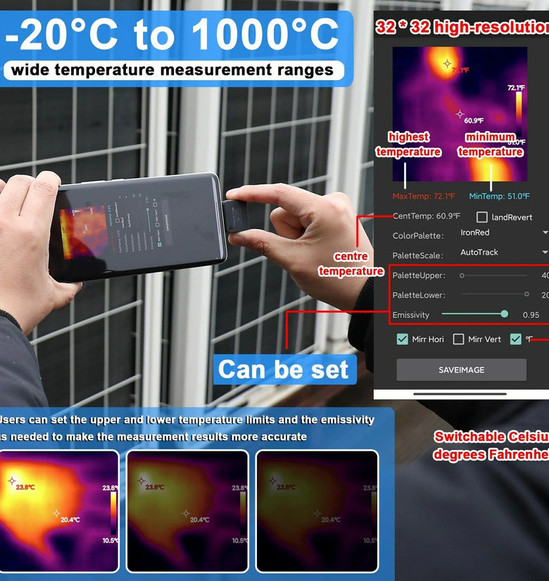 mso-bidi-font-family:'Times New Roman';font-size:10.5000pt;mso-font-kerning:1.0000pt;'>Portable Mobile Phone Thermal Imager -20℃ to 1000℃ Small Thermal Imaging Camera Support Maximum Minimum Center Temperature Measurement 5 Color Palette Modesmso-bidi-font-family:'Times New Roman';font-size:10.5000pt;mso-font-kerning:1.0000pt;'>