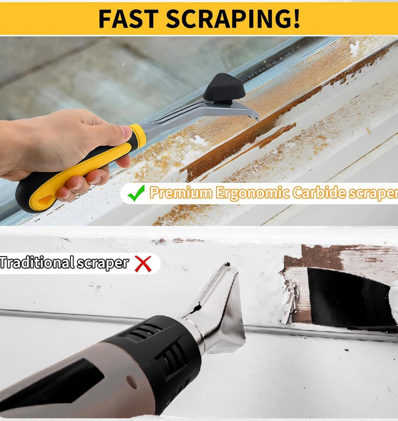 Equipped with an ultra-sharp tungsten carbide blade that lasts five times longer than traditional steel, this tool effectively scrapes paint, glue, stains, and rust without compromising accuracy or speed.