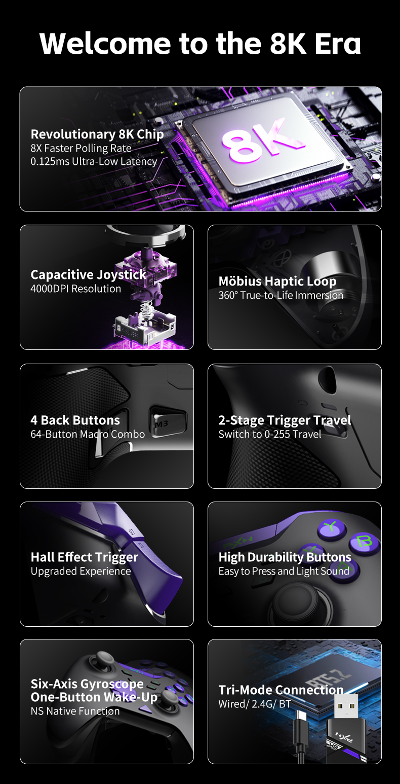 1. 8K Chip Technology: Revolutionary chip with ultra-low latency and 8X faster polling rate for precise response.