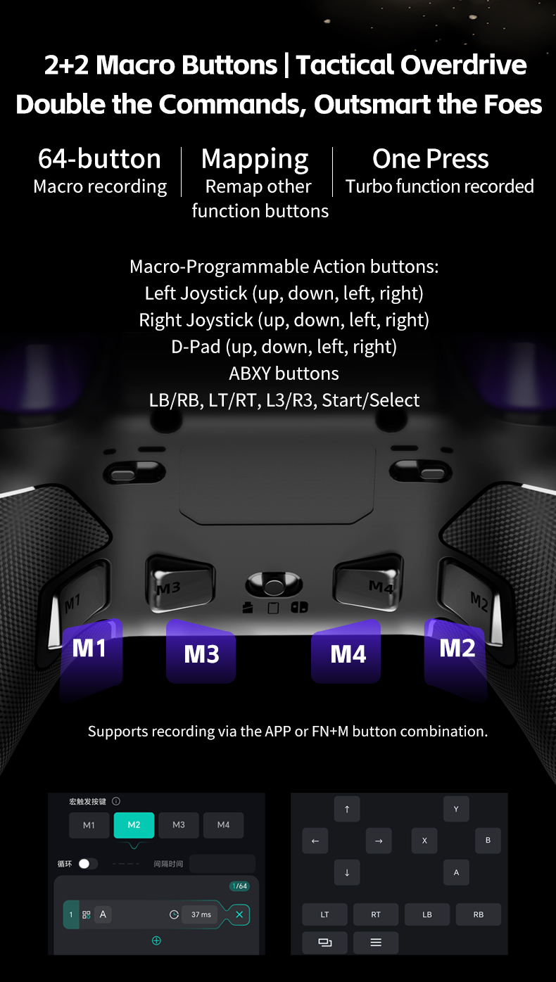 5. Macro Buttons: Four programmable back buttons allow for custom configurations and tactical gameplay.